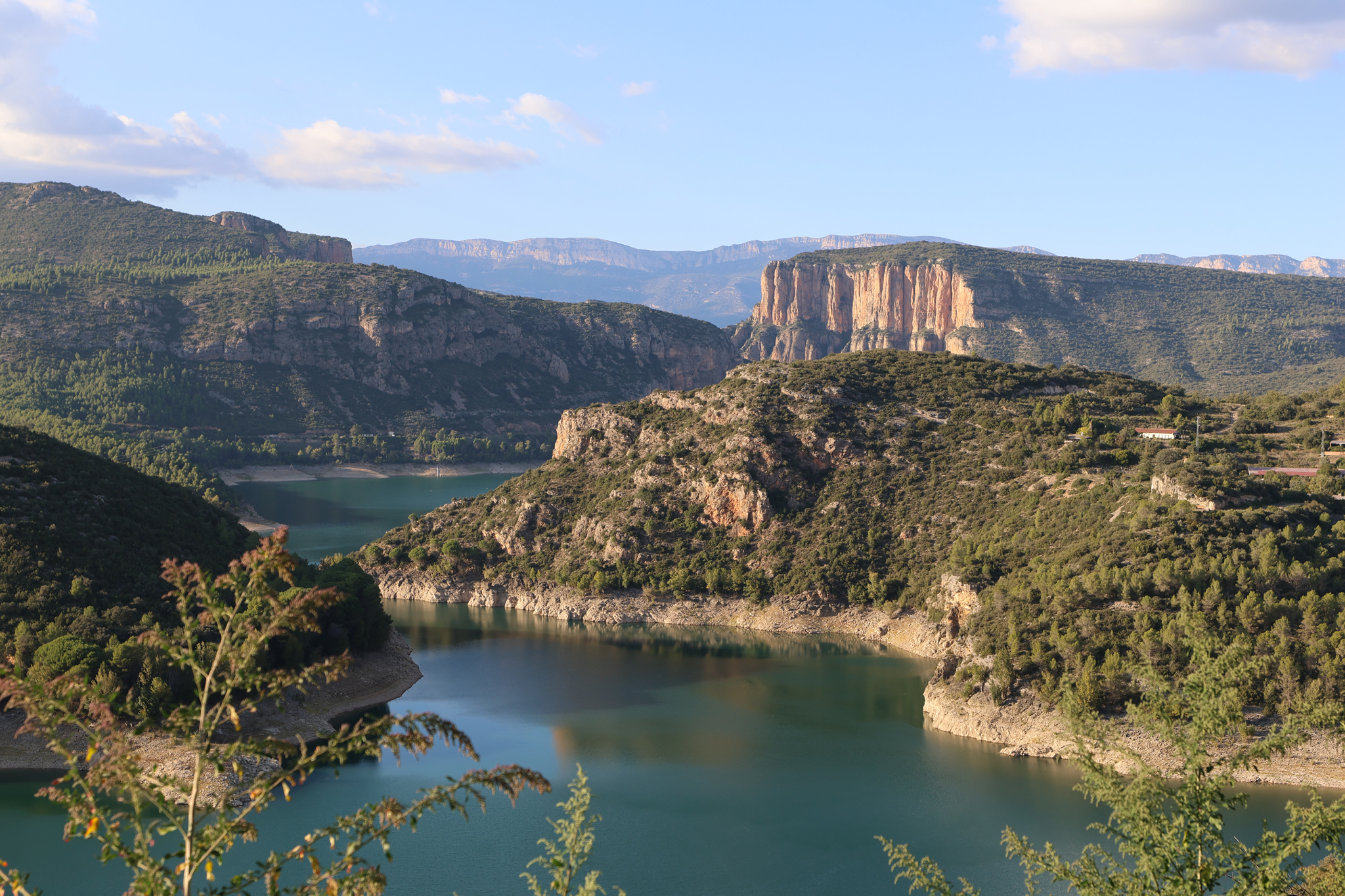 Cerrando el conjunto, els Cingles de Valcebre, que como una culebra de piedra estilada , envuelve y equilibra el paisaje.