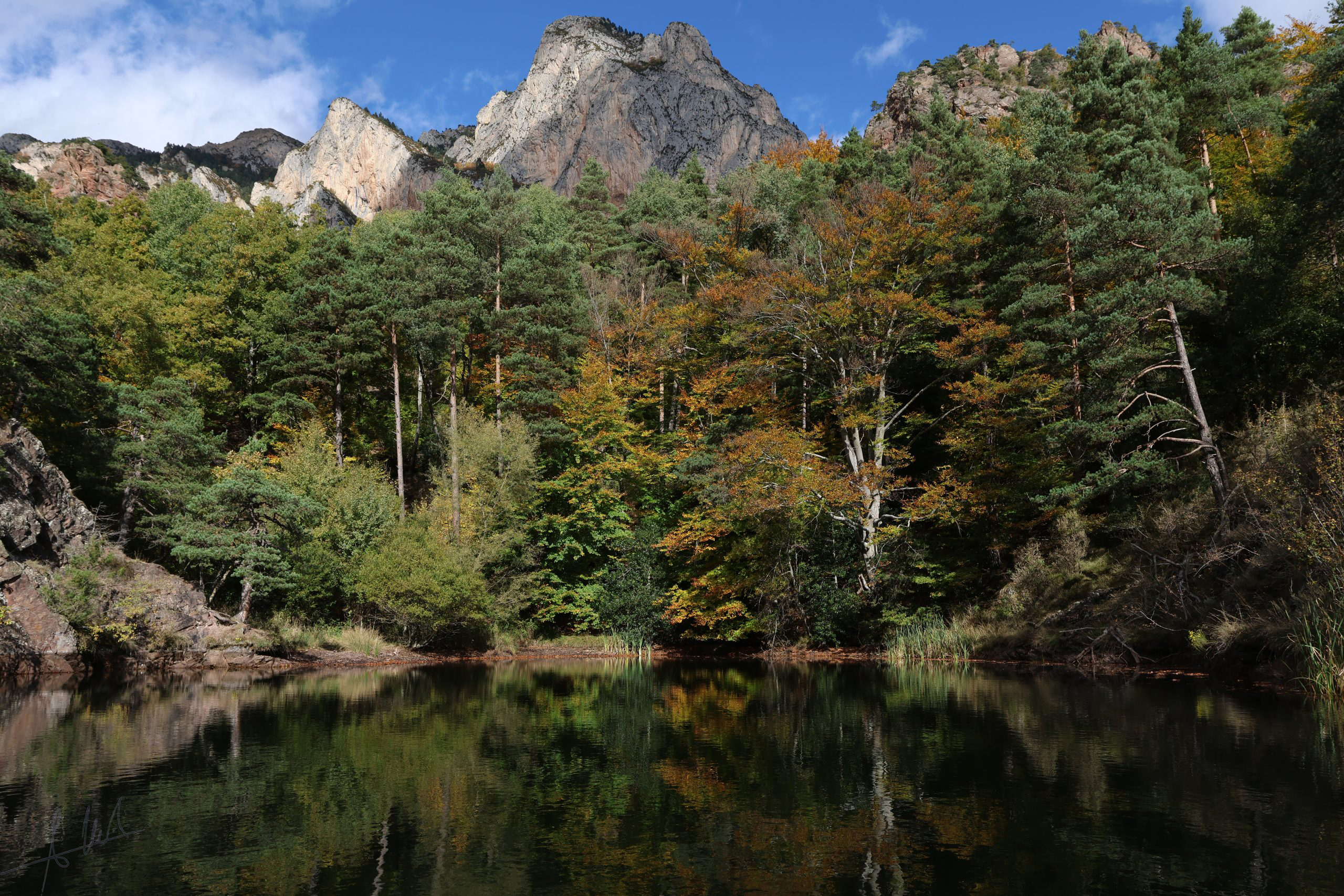 Como curiosidad: si algún día de otoño subís al Castell y miráis hacia el sur, hacia la parte más profunda del valle, veréis —entre los tonos amarillos, ocres y anaranjados de los caducifolios— un punto rojo-fucsia intenso, muy llamativo.