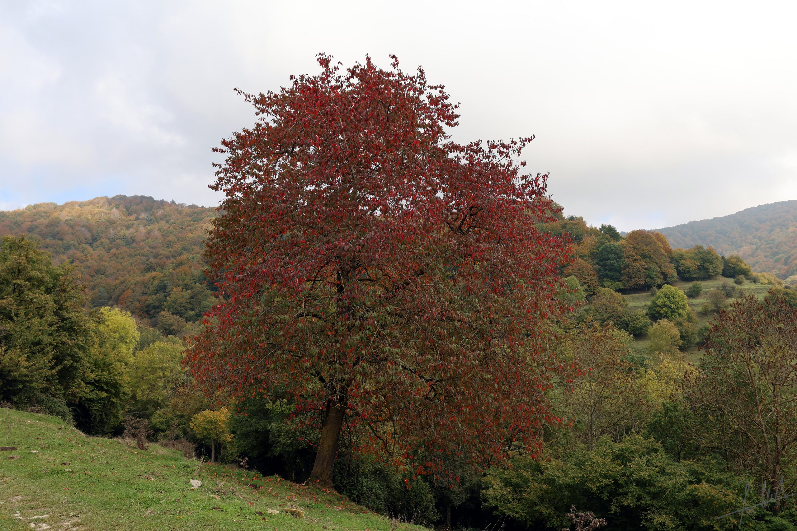 Es un cerezo silvestre magnífico, que actúa como un faro natural en medio de este entorno maravilloso.