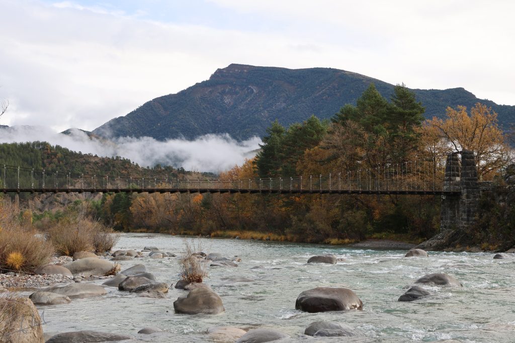 El río Ara pasa con bastante agua siendo Otoño, en primavera pasa con el doble de caudal y la sensación de cruzarlo es mucho más intensa.