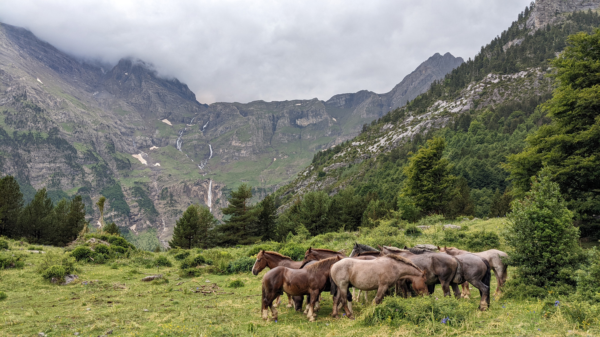 Pasaba por allí; amenazaba lluvia, y me encontré este grupo de caballos, al principio dispersos , cada uno a lo suyo.