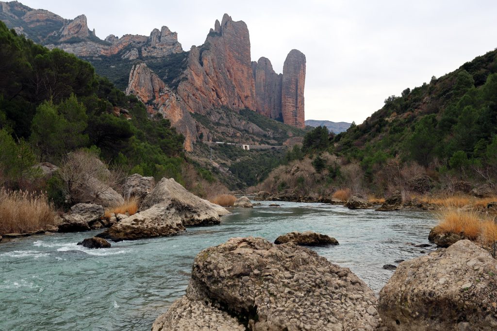 A este paisaje sorprendente se le suma el paso del río Gállego, que serpentea a los pies de las paredes.
